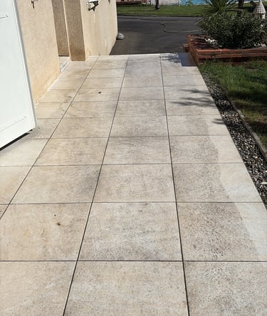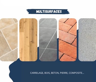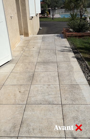 Nous utilisons du matériel professionnel haute pression, adapté à chaque type de surface (pierre, bois, carrelage, béton, composite...), pour éliminer en profondeur :